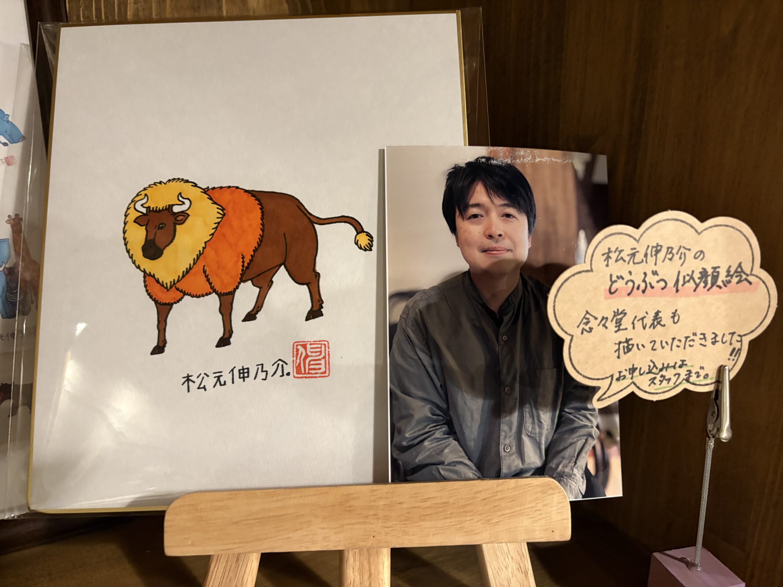 念々堂代表も描いていただきました。アメリカバイソンだそうです。めずらしい動物を描いていただきました!
